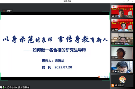 7月28日,yl23411永利集团官网邀请山东大学机械工程学院博导、副院长宋清华教授开展题为“以身示范培良师,言传身教育新人——如何做一名合格的研究生导师”的线上导师座谈会。学院领导班子、全体研究生导师参加了会议本次导师座谈会,分管研究生工作副院长郭辉主持会议。