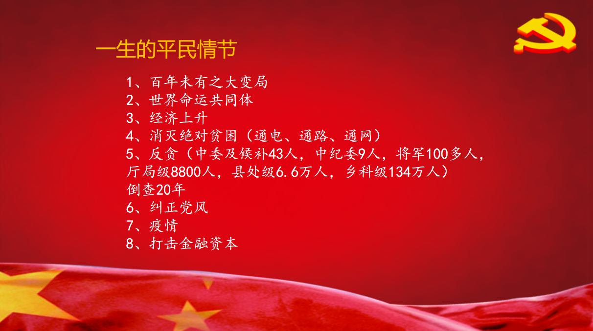老兵讲故事宣讲团谢鲁淮老师围绕“站起来、富起来、强起来”主题,并紧密结合马克思三个主要理论进行阐述。他重点阐述了剩余价值理论;并表示经济是基础,上层建筑依附于经济基础,但对经济基础有强大的反作用力;同时指出共产主义必然要代替资本主义。谢老师从“十月革命一声炮响”为与会人员激情洋溢地讲述了党的百年历史风云变幻、波澜壮阔,谈到以习近平为核心的党中央伟大平民情结。他指出青年学员要庚续红色血脉,坚定理想信念,把党和国家的命运与自己的命运紧密结合起来,做好人生选择。同时,继承与发扬红色精神,真正成为中华民族伟大复兴的栋梁。