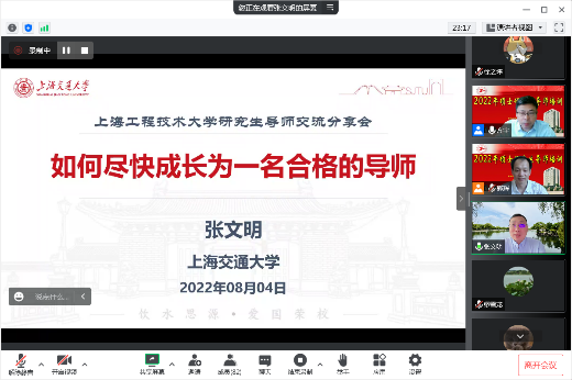 8月4日,yl23411永利集团官网邀请上海交通大学特聘教授、博导张文明教授开展题为“如何尽快成长为一名合格的导师”的线上导师培训会。学院领导班子、全体研究生导师参加了会议本次导师培训会,院长方宇主持会议。
