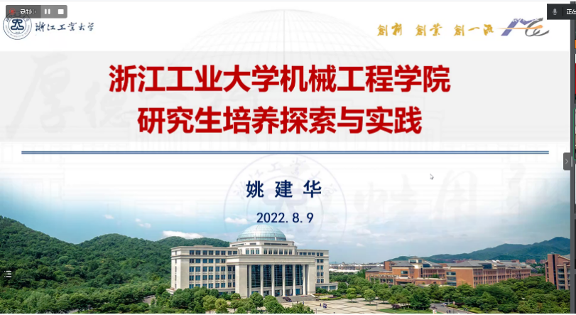 姚建华教授介绍了浙江工业大学机械工程学院近年来在研究生培养的改革探索与实践,分别从招生入口、过程培养与质量督导、严把毕业环节出口及进一步改革计划等几个方面,分析交流基本做法与初步成效,并讨论后疫情时代的产教融合科教协同的教学改革思路。最后,姚建华教授和与会导师就研究生培养导师队伍建设,科研团队建设等展开了热烈的交流。与会的导师从姚建华教授的报告中获益良多,在培养研究生方面被开启了新方向,新思路。