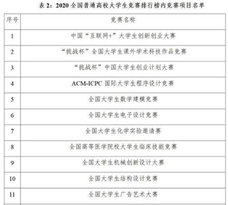 全国普通高校大学生竞赛排行榜内竞赛项目名单(中国高等教育学会)