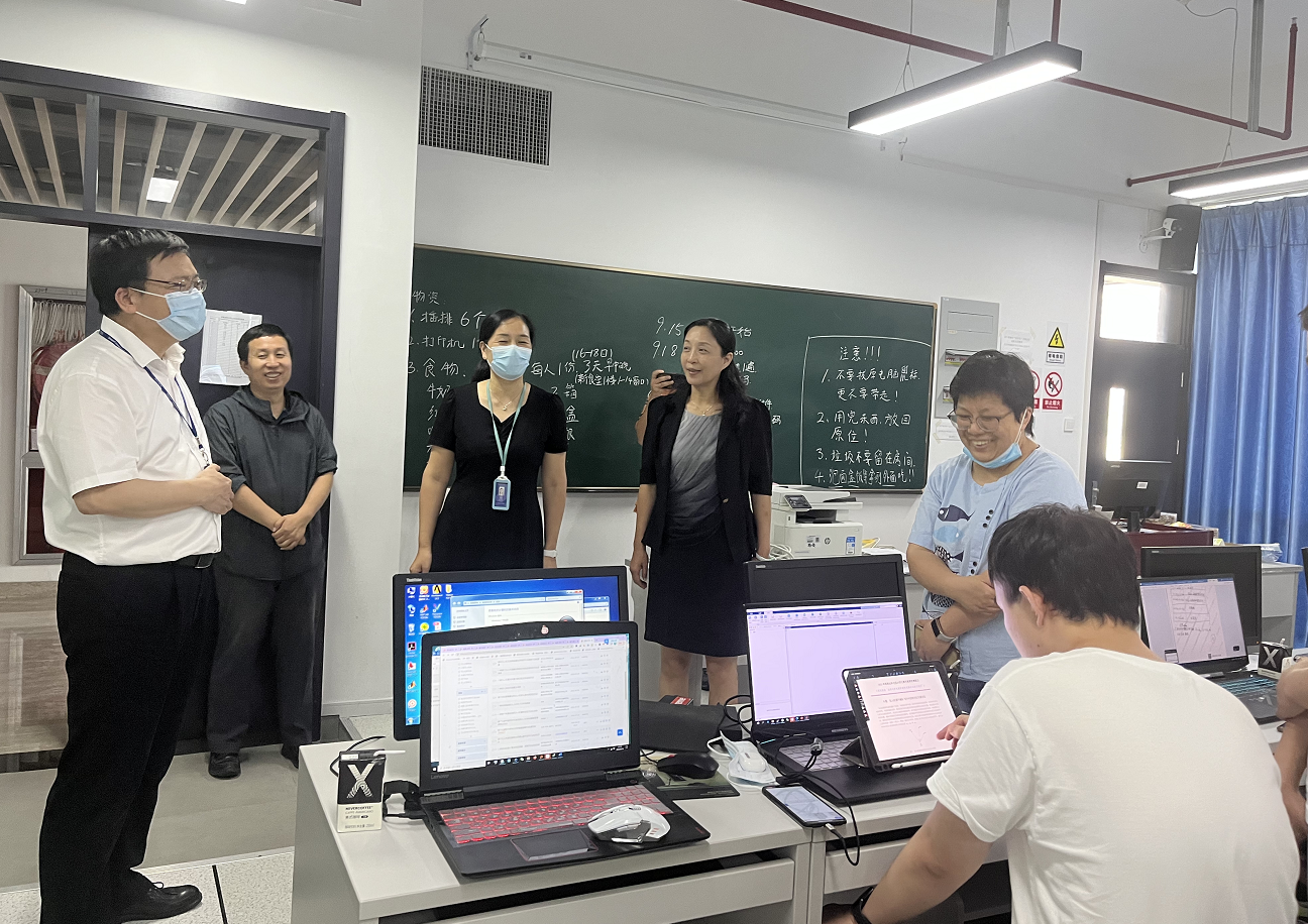 9月16日下午15:30,副校长夏春明、教务处处长饶品华、实践创新科科长杨光一行在yl23411永利集团官网党委书记虞蓉、副院长张立强、大学生创新基地负责人张春燕等陪同下,亲临竞赛现场为永利集团官网2022年全国大学生数学建模竞赛队员加油助威!夏校长到竞赛现场询问了同学们的选题情况,了解了今年数学建模竞赛题目和竞赛状态,并向同学们讲述了数学建模的重要意义,鼓励同学们冷静选题、缜密思索、团结协作、顽强拼搏,预祝同学们取得优异成绩。随后,夏校长一行查看了数学建模竞赛期间的后勤保障情况,并嘱托相关人员一定为参赛队员做好后勤保障和服务工作。