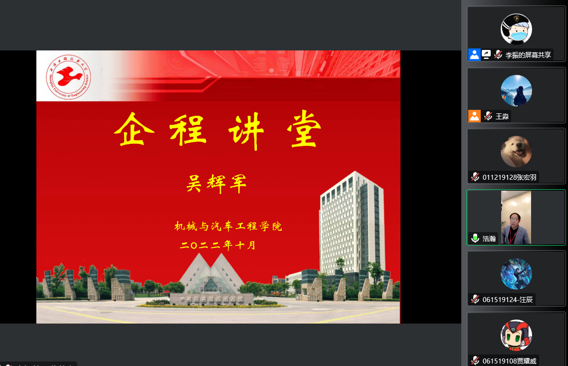 吴军辉经理有着近十年的教育培训行业管理工作,对大学生就业指导、职业生涯规划具有丰富的实战经验。在讲堂中,他从中国汽车工业发展四阶段讲起,带领大家一起分析了目前新能源车辆发展的新趋势,他指出目前汽车类岗位对于人才的需求量巨大,鼓励同学们求职过程中要有信心。