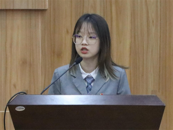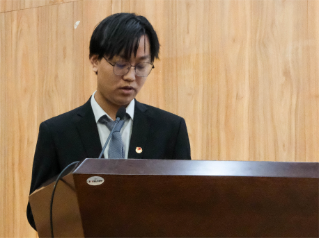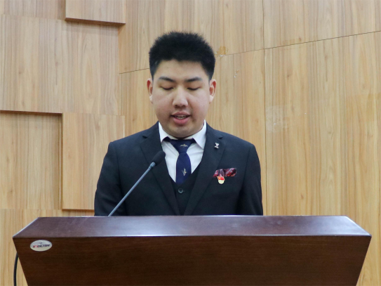 第十二届校学生会主席团代表杨昀斌向大会致辞。他指出,我院学生会始终高举习近平新时代中国特色社会主义思想伟大旗帜,深入学习宣传贯彻党的二十大精神,作为高校学生骨干我们要注重思想引领,把准时代脉搏;巩固改革成效,强化自身管理;响应学生需求,提升服务能力。