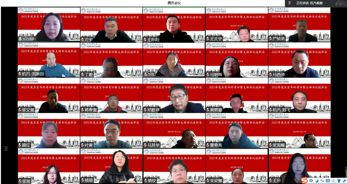为进一步加强基层支部和系室建设,压紧压实管党治党、强基固本的政治责任,全面考察与评价学院各基层支部、系室工作实绩,111日,yl23411永利集团官网线上召开2022年度系室年终考评暨支部书记述职会。学院党政班子、学院工会主席、学院教授委员会主任、学院督导办主任、系室主任、副主任、支部书记、支委委员、学院党代会教代会代表参加此次会议。