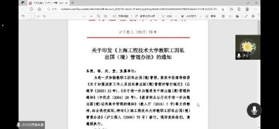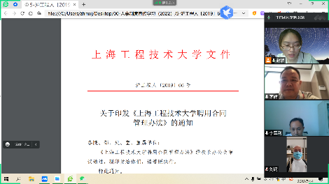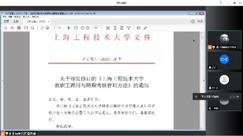 (7)学习了《上海工程技术大学聘用与聘期考核管理办法》,以激发教职工活力为目的,实现“岗位能上能下、人员能进能出、薪酬能升能降”的人事改革目标,以教育教学、科学研究为主要考核内容。办法从首聘考核,新晋考核,存量考核三个类型对考核指标以及考核结果与应用进行了详细界定。