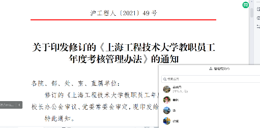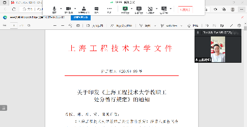 (8)学习了《上海工程技术大学教职员工年度考核管理办法》,对考核对象、考核内容、考核等次级标准、考核结果及应用等进行了详细的研讨。年度考核管理办法立足正确评价教职员工的德才表现和工作实绩,激励教职员工认真履行岗位职责,不断提高政治和业务素质。