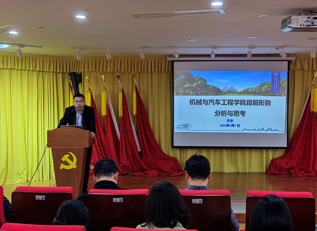 院长方宇通过校内横向比对、学院自我分析、学院改革思考三个方面作了《yl23411永利集团官网目前形势分析与思考》主旨讲话,他强调,中层干部是学院发展的中流砥柱,是具体工作的组织者和实施者,是执行决策和部署的带头人。方院长进一步提出学院具体改革思路:一是抓龙头、续长板、补短板,学院本科教学规格扎实,与行业学院相比具有明显优势,已形成覆盖全专业的学生科创体系,成为学校特色品牌,工程化育人成效显著,助力学院专业品牌与内涵提升,但学科方向的特色高峰优势不明显,博士点建设的可持续能力需加强;二是久久为功、善做善成,要科学评价两个新工科专业人才培养质量,机械工程专业根基不能丢失,要切实推动学科交叉科研团队改革,探索团队与教师科研业绩考核互融机制;三是完善制度建设,建立制度规矩底线文化,推动党政办、学办、实验中心三型机关建设,牢固树立教学质量的底线意识,建立学院教学质量监管一票否决机制,强化人才引领作用,集中优势建立新能源汽车科技服务功能性平台。