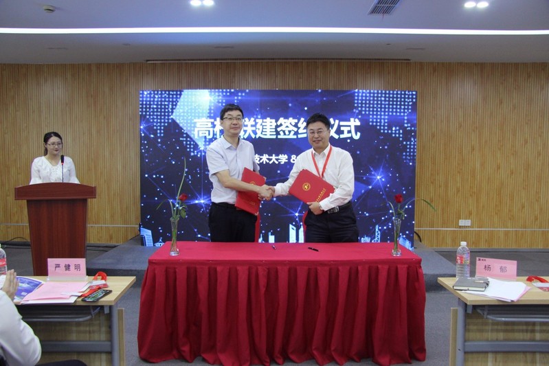 王岩松副校长与威凯公司的总支书记、副总经理杨郁进行了会谈,双方表示在人才培养、科学研究、产学合作、资源共享等方面可进行深入合作,并代表双方签订了全面战略合作框架协议。