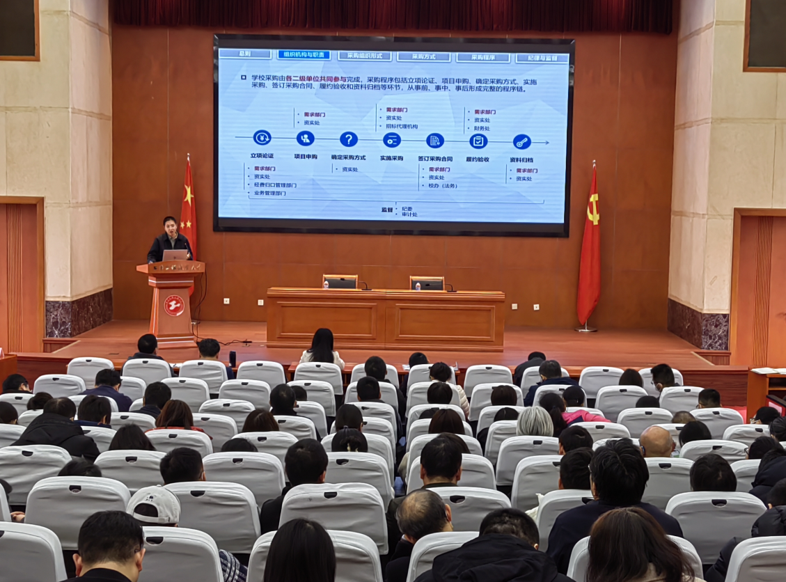 会上,学院邀请了资产与实验室管理处的白亮老师为全院教职工做招标采购专项培训与辅导。白老师结合学校现行的采购管理办法,从采购组织形式、采购方式、采购程序、纪律与监督等方面,详细介绍了采购中注意事项和常见问题,切实提高了教职工对学校采购管理办法的认识和了解程度,极大地帮助了学院教职工今后更好开展采购相关事宜。