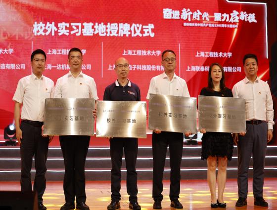 活动现场,上海工程技术大学党委常委、组织部部长朱洪春,新桥镇党委副书记、镇长吴超峰共同为校外实习基地、产学研合作教育基地授牌。