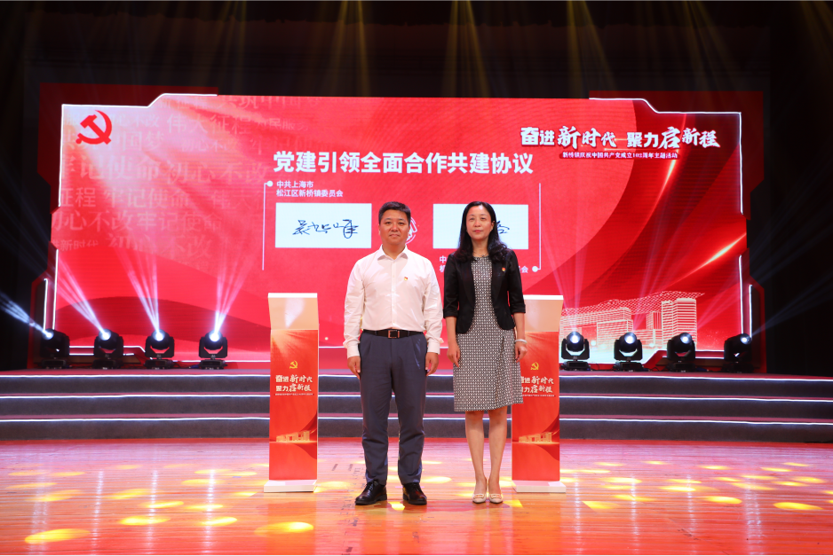 为推进主题教育走深走实,推动校地深度合作,共谱产教融合新篇章。6月30日,新桥镇开展“奋进新时代 聚力启新程”庆祝中国共产党成立102周年主题活动,活动现场yl23411永利集团官网与新桥镇签署党建合作共建协议。松江区委副书记韦明出席活动并讲话,上海工程技术大学党委常委、组织部长朱洪春,yl23411永利集团官网党委书记虞蓉参加活动,新桥镇党委书记黎轶致辞,镇党委副书记、镇长吴超峰主持会议,yl23411永利集团官网党委副书记黄中子,支部书记代表,学生党员代表等参加本次活动。