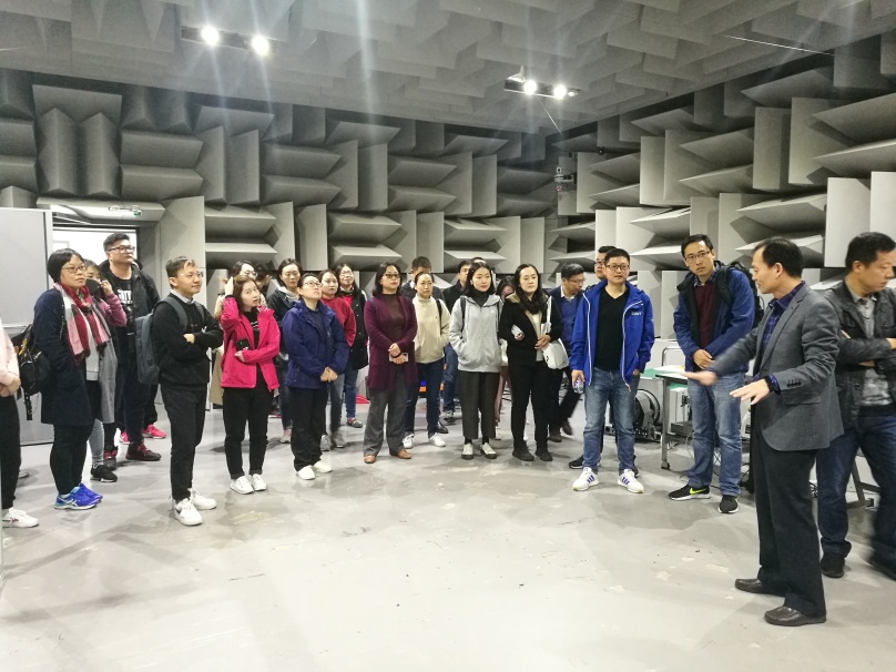 首先在方宇处长和郭辉副院长的带领下参观了平台实验室,郭辉副院长向平台管理中心领导、专家介绍了永利集团官网平台实验室的概况,详细介绍了半消声室的特色、设备的主要功能、所承担的科研项目及近年来平台建设的各项工作推进情况。参观过程中,专家代表就实验室的测试及技术问题与平台的老师进行了交流,郭辉副院长向代表们介绍了平台的未来规划和发展方向。