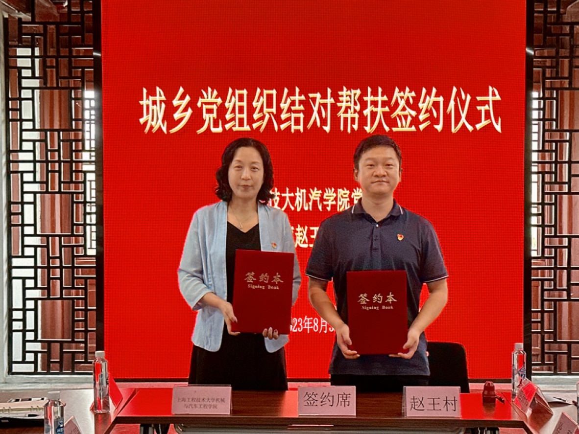 为深入贯彻落实党的二十大精神,主动适应“三农”工作新形势新任务新要求,为上海加快走出具有现代化国际大都市特点的城乡融合发展新路子提供坚强组织保障和人才、科技资源支持。8月31日下午,上海工程技术大学yl23411永利集团官网党委和新浜镇赵王村党总支签署结对帮扶协议。新浜镇党委副书记卜春芳,赵王村领导班子,yl23411永利集团官网领导班子、系室及支部书记代表出席签约仪式。会议由赵王村党总支姚海华书记主持。