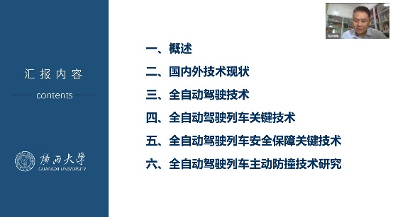 2023年9月9日9:30,通过华为云会议视频平台,邀请广西大学机械工程学院副院长、博士生导师贺德强教授为暑期学校做题为《智能列车及其关键技术研究》的线上专题讲座。讲座由yl23411永利集团官网院长方宇教授主持。