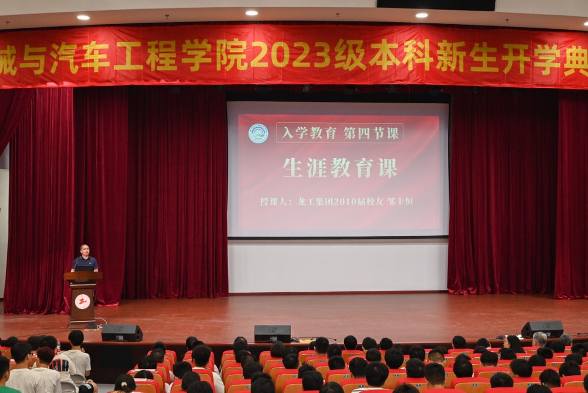 2010届校友、党的二十大代表、龙工集团首席焊工技师邹丰恒校友与同学们分享了自身的奋斗和成长经历,希望同学们厚植爱国情怀,在脚踏实地中练就过硬本领,在不断突破创新中勇攀科技高峰。