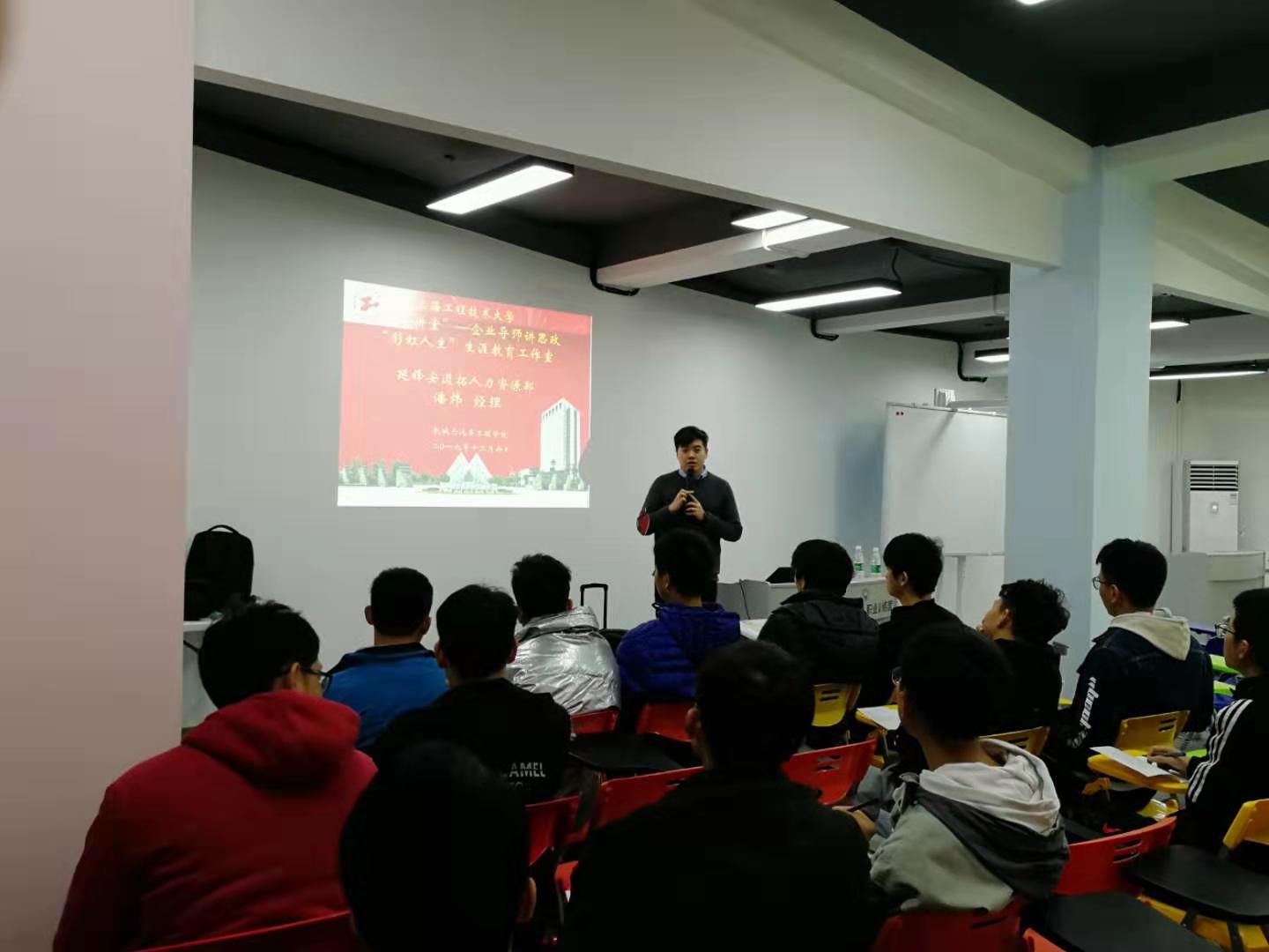 为进一步健全“三全育人”思政工作体系,围绕立德树人根本任务,充分利用学校和社会各方资源,结合学校“企程讲堂”思政育人品牌、“彩虹人生”生涯教育辅导员工作室。yl23411永利集团官网、材料工程学院联合邀请延锋安道拓座椅有限公司招聘经理潘炜,在学校职业训练营,为同学们带来一堂由企业HR主讲的“就业指导课”,为毕业季同学面试求职“答疑解惑”。