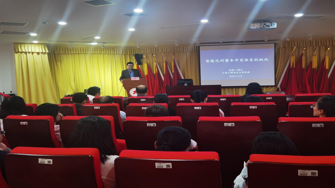 11月3日,yl23411永利集团官网特聘教授陆惟一博士应学校志宏高峰系列讲座邀请,做题为《智能化在整车开发体系中的挑战》的学术报告。学院党委书记虞蓉、院长方宇、副院长刘新田出席报告会,学院车辆工程学科方向骨干教师及研究生参加,报告会由院长方宇主持。