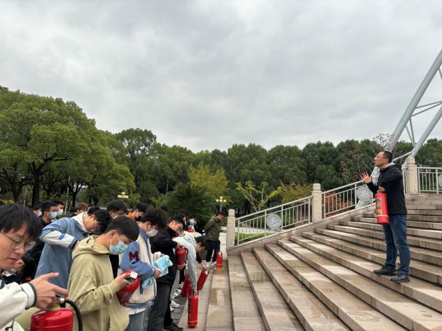 逃生演练结束后,所有同学前往学校体育馆广场进行了灭火器实操培训。保卫处吴挺老师讲授并演示了干粉灭火器的使用方法和操作注意事项,并通过现场模拟起火点进行灭火示范,学生们纷纷主动上场亲身体验操作,使用干粉灭火器进行灭火,每位学生均通过实际操作灭火器掌握了灭火的技巧和方法。