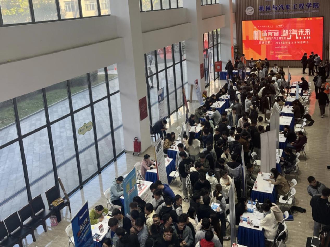 In order to better implement the important role of employment work to benefit people's livelihood and promote development, and to provide a solid guarantee for the employment work, on the afternoon of November 21, the School of Mechanical and Automotive Engineering in the first floor of the Modern Transportation Engineering Center hall held a "'machine' youth, Zhi 'Auto' future" job fair. Automobile' future" 2024 graduates special job fair, the scene of a total of 26 enterprises, nearly 1,000 fresh graduates to participate.