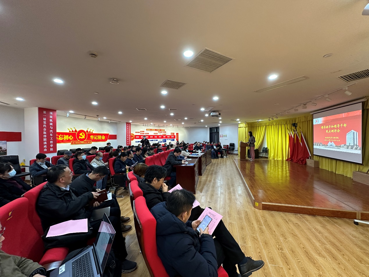 为进一步加强领导领导班子和干部工作,根据校党委组织部《关于开展上海工程技术大学2023年度中层领导班子及中层干部考核工作的通知》及《关于开展上海工程技术大学2023年度科(职)级干部选拔任用“一报告两评议”工作的通知》要求。12月13日,yl23411永利集团官网在现代交通大楼8B222开展2023年度领导班子和领导干部民主评议暨干部工作“一报告两评议”测评会。学院领导班子、党委委员、工会主席、各系室负责人、党支部书记、校、院教代会代表、学生代表等共同出席测评会。会议由学院党委副书记黄中子主持。