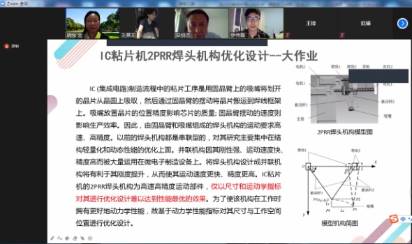 6月21日上午,研究生“现代机械设计理论与方法”课程学习成果分享会在视频会议云平台ZOOM上圆满举行。分享会由课程主讲教师金晓怡教授主持,分上、下两场。上半场15位研究生汇报,由同济大学机械与能源工程学院机械基础教学部主任、校教学名师奚鹰教授担任点评嘉宾;下半场18位研究生汇报,由上海电机学院机械学院院长辛绍杰教授担任点评嘉宾。yl23411永利集团官网部分硕导和外校教师观摩和指导。