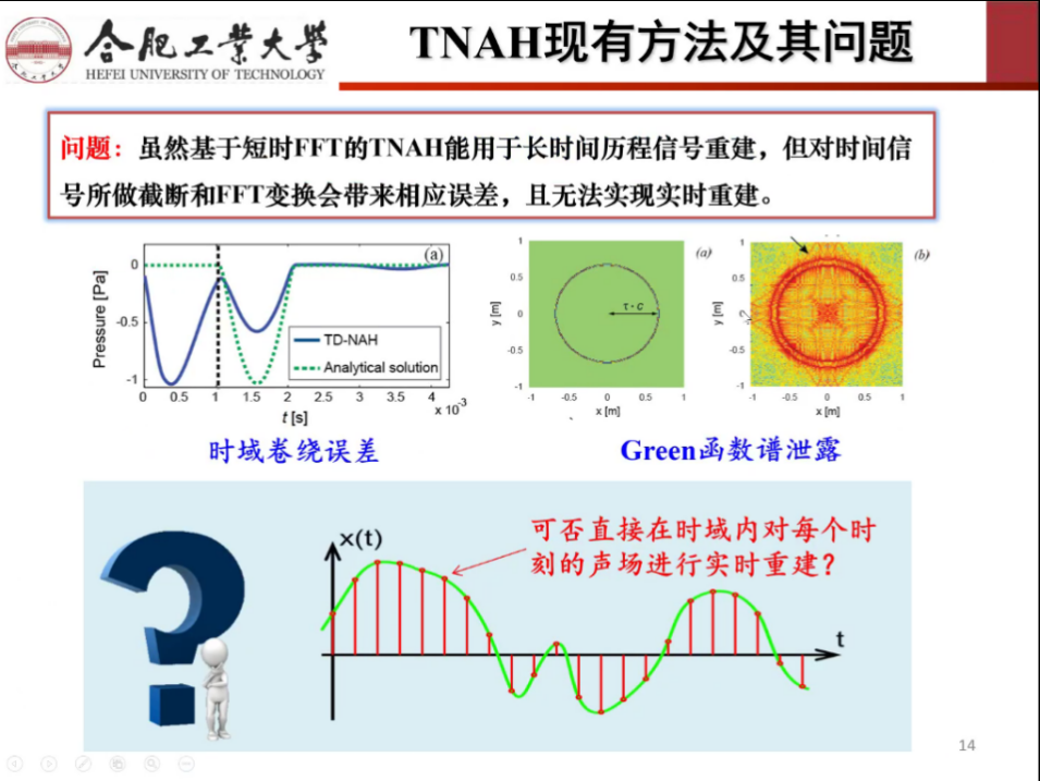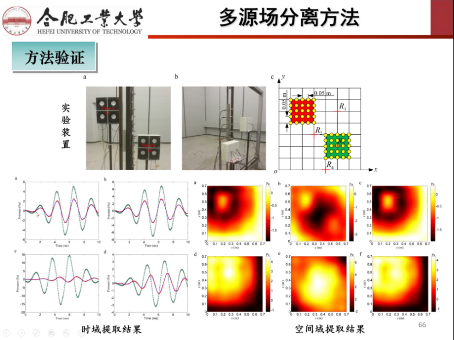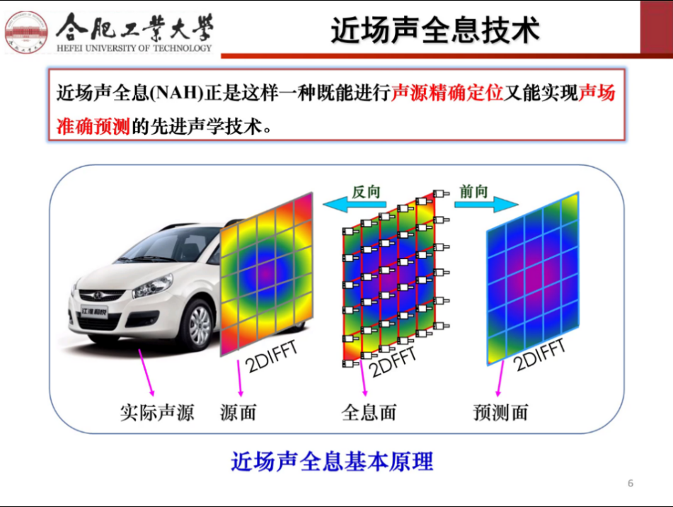 毕传兴教授由噪声控制着手,从噪声控制途径引入噪声源识别技术——近场声全息(NAH),对比稳态与非稳态声场,讲解了适用于非稳态声场的时域近场声全息技术(TNAH),介绍了TNAH的现有方法及存在问题。针对实时近场声全息(RT-NAH)的局限性,提出了相应的解决方法,并做出了很多创新工作。其中,对RT-NAH只能实现声压对声压的重建问题,提出重建质点振速、重建力等;对阵列限制问题,提出时域平面波叠加法(TDPWSM);对声场限制问题,提出在非自由场中进行声场分离;对声源限制问题,提出逆时域边界元法(ITBEM)和时域等效源法(TESM)。在此基础上,针对时域迭代求解带来的误差累计效应而导致的严重非稳定问题,毕教授提出了时域平均技术和多步求解技术,并揭示了模型求解不稳定的内在机制,提出求解稳定性的控制策略。最后,毕教授介绍了TNAH在汽车行业的应用前景及对未来研究方向的展望,使听众更清晰的了解到近场声全息技术在汽车领域所发挥的重要作用。