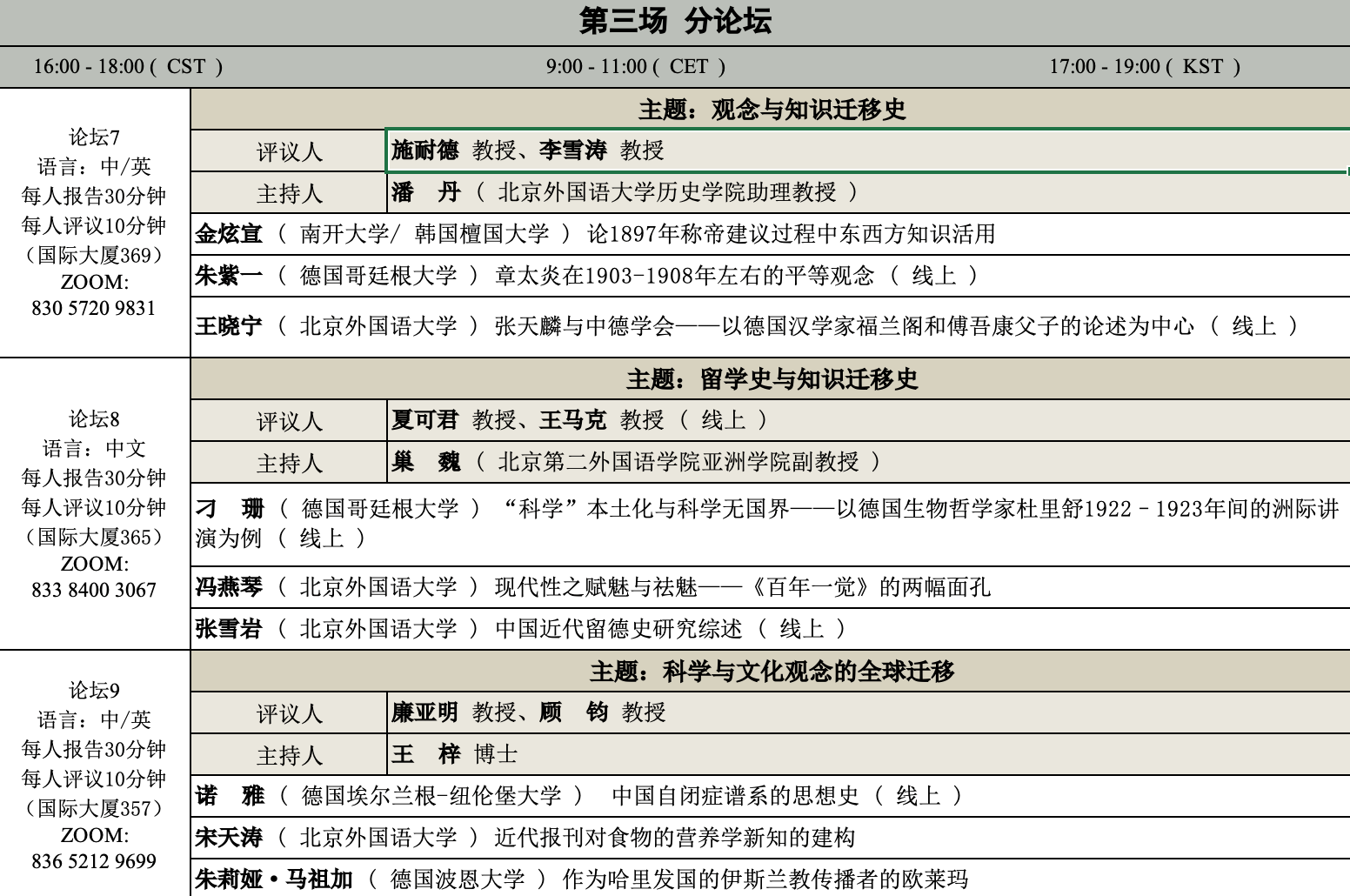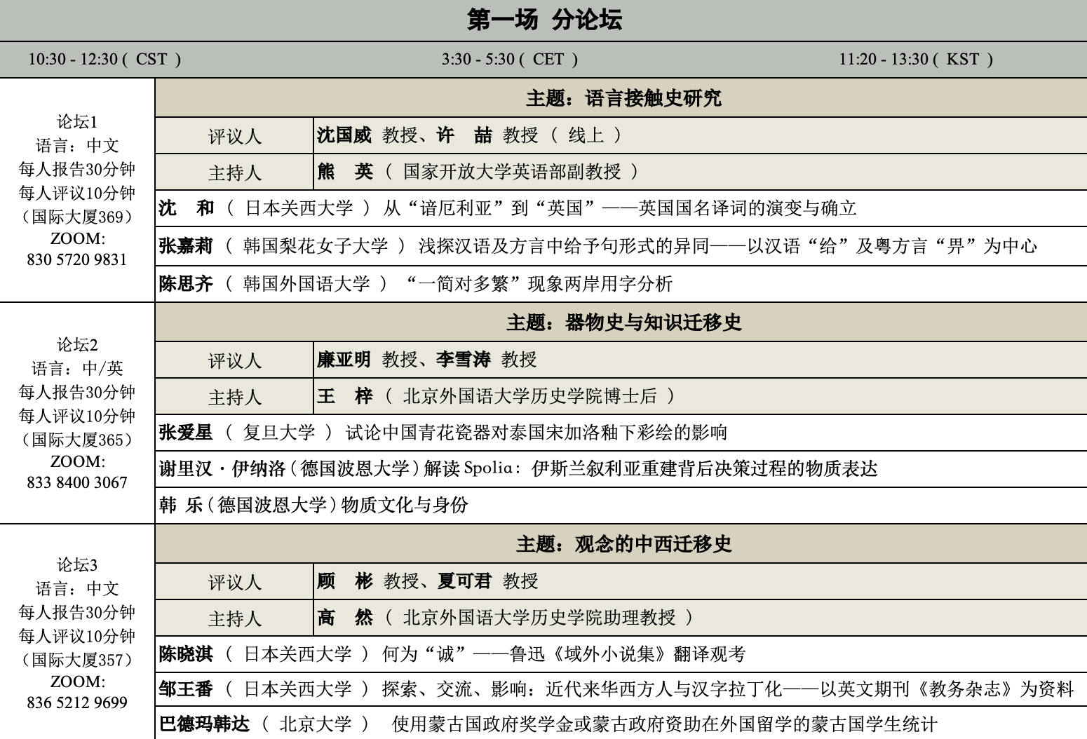 本届论坛的主题定为“全球史视野下的知识迁移与语言接触”,子主题包括语言接触史研究、概念史研究、知识迁移史研究、留学史研究、全球史专题研究等专题。本届论坛将由德国爱尔兰根-纽伦堡大学、德国波恩大学、德国哥廷根大学、韩国庆星大学、日本关西大学5所欧亚高校共同参与,旨在推动博士生跨国跨地域展开学术交流,建立共同研究的学术联系,探讨全球史视野下的知识迁移与语言接触等议题。