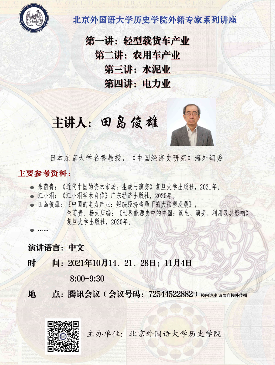 讲座专家:田岛俊雄,日本东京大学名誉教授、《中国经济史研究》海外编委