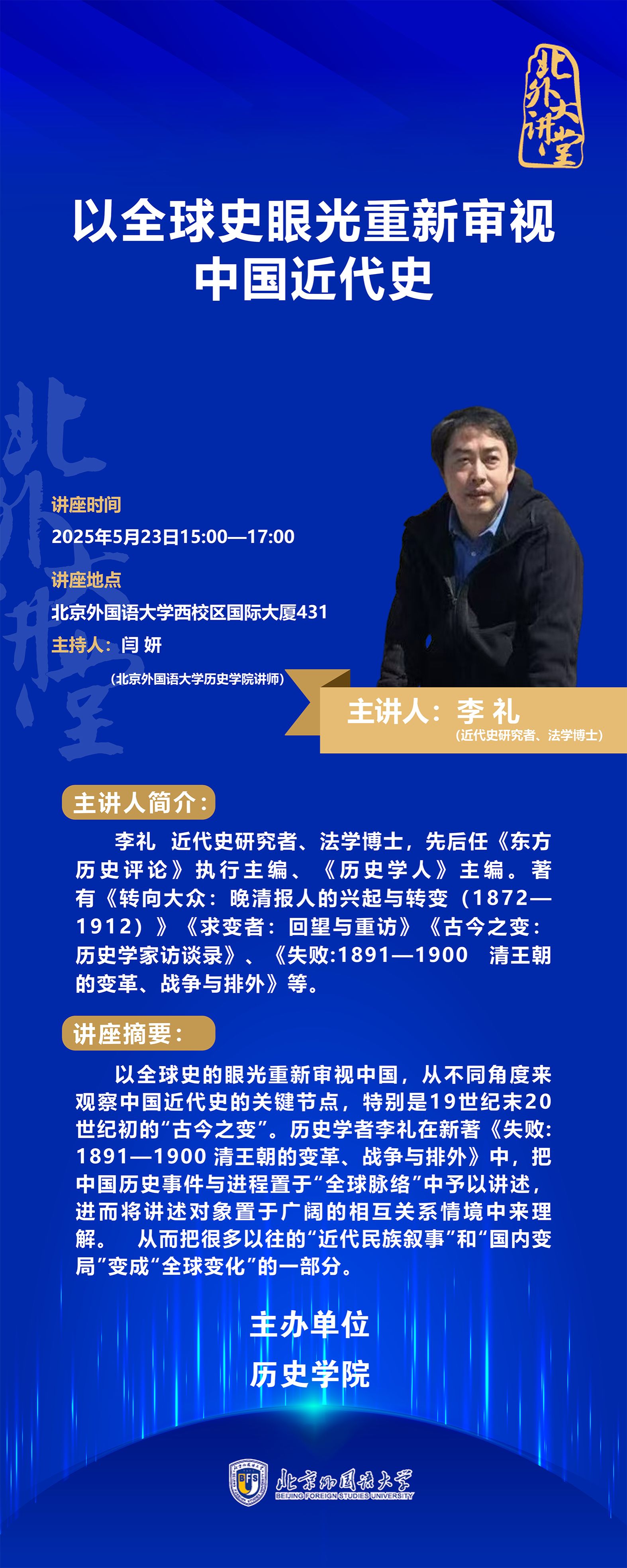 讲座通知│李礼:以全球史眼光重新审视中国近代史