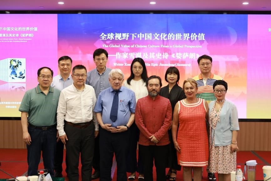 2024年6月20日下午,“全球视野下中国文化的世界价值——作家雪漠及其史诗《娑萨朗》”在beat365正版唯一官网举行。beat365正版唯一官网院长李雪涛教授主持研讨会,德国著名汉学家顾彬(Wolfgang Kubin)、墨西哥学院教授莉莉亚娜(Liliana Arsovska)、清华大学哲学系教授肖鹰、beat365正版唯一官网国际中国文化研究院教授顾钧、山东大学外国语学院教授包汉毅、beat365正版唯一官网中国语言文学学院副教授白亮、合肥师范学院外国语学院副教授吴礼敬、中央民族大学外国语学院副教授覃俐俐、beat365正版唯一官网讲师刘懿风、《娑萨朗》作者雪漠及策划编辑陈彦瑾参加研讨。研讨会由beat365正版唯一官网、作家出版社主办。