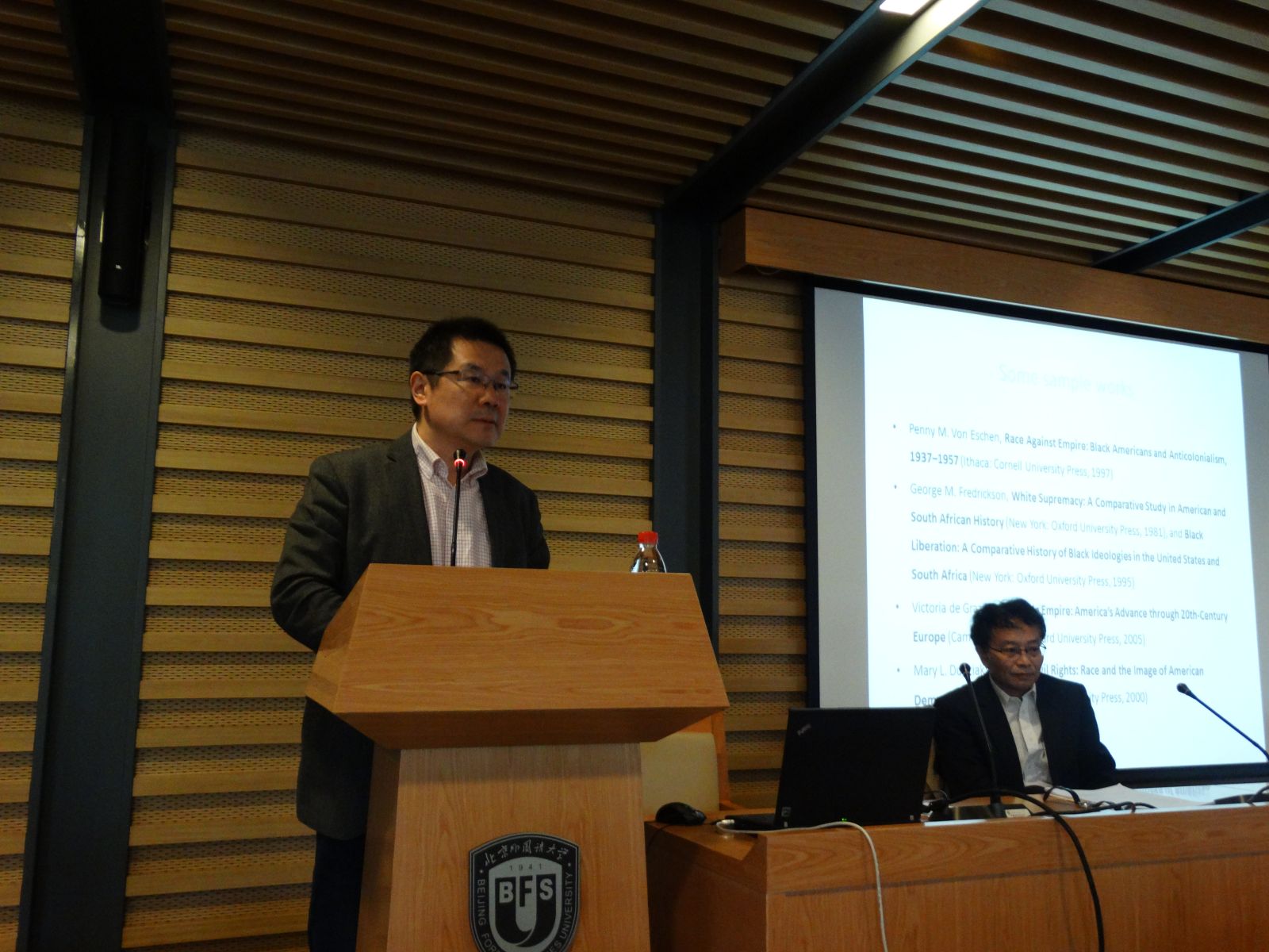 此次讲座王希教授主要介绍了美国历史学界的最新研究趋势。他首先对世界史和全球史概念的区分和联系做了说明。国内历史学界通常用两个概念——“中国史”、“世界史”——来对历史学科做大致的分类。中国史似乎没有太多的歧义,凡是中国“内部”的历史都属于中国史的范畴,中国以外的历史(国别史、地区史等)就属于“世界史”的范畴了。国内很多大学的历史学系都是这样划分的,人才培养、学位计划的设定也都是按这个思路。国家颁布的一级、二级学科的分类使用的也是这样的概念。仔细分析起来,这样的划分是有问题的,好像世界中没有中国,中国不属于世界一样,缺乏一以贯之的理论框架来把世界各国的历史和中国历史连贯起来。所以,世界史应该如何教,教材应该如何写,世界史的教学应不应该包括中国史,都是历史学家一直在争论的问题。这种情况在美国同样存在。相对于世界史,美国史的研究无论在研究人数和大学里的科系划分都处于绝对的大多数。