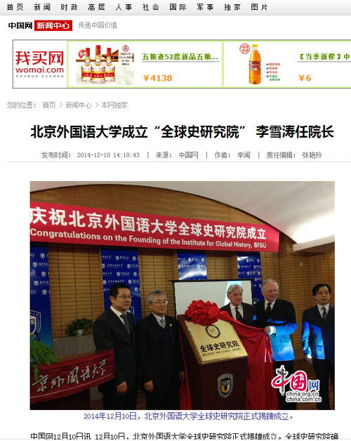 中国网:beat365正版唯一官网成立“全球史研究院” 李雪涛任院长