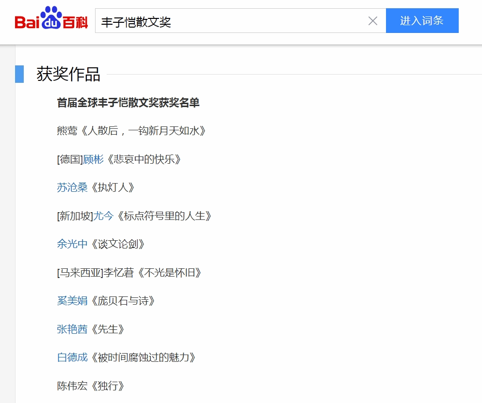 首届全球丰子恺散文奖由浙江省桐乡市人民政府和美文杂志社共同主办,自2014年5月启动征稿以来,受到了海内外作家的广泛关注和参与。由李敬泽、贾平凹、吴义勤、施占军、李舫、彭程、黄亚洲、麦家、穆涛9 名权威专家组成评委会,2015年5月底,经初评和复评两轮评选后,顾彬教授的散文《悲哀中的快乐》,在众多参赛作品中脱颖而出,喜夺金奖。
