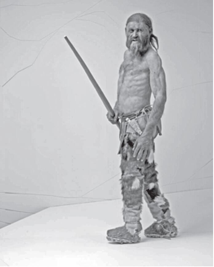 举世闻名的“冰人奥兹”(Ötzi),很可能在公元前3359 到3105 年间被谋杀,因此距今大概有5000 多年。基因和技术分析显示出他的来源地和生活环境。他使用的匕首来源于近意大利北部加尔达湖地区,他的铜制斧头很可能来自今天意大利的托斯卡纳地区。(Fleckinger, 2011, Guilaine, 2011).