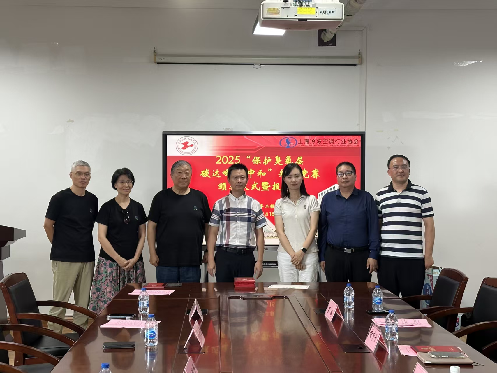 To promote environmental knowledge and spread the concept of ecological civilization, on September 16, the School of Mechanical and Automotive Engineering, under the guidance of the Shanghai Municipal Ecology and Environment Bureau’s Solid Waste and Chemicals Management Technology Center and in collaboration with the Shanghai Refrigeration and Air Conditioning Industry Association, hosted the award ceremony and report meeting for the 2025 “Ozone Layer Protection, Carbon Peaking and Carbon Neutrality” Knowledge Competition at the Transportation Building. Attendees included Lu Ronghua, Chief of the Solid Waste Center; Shao Naiyu and Gong Qingwei, Secretary-General and Deputy Secretary-General of the Refrigeration and Air Conditioning Industry Association; Shi Weihua, national training center instructor and WorldSkills Shanghai coach; Huang Zhongzi, Deputy Secretary of the School Party Committee; and faculty and student representatives including Deng Shengxiang and Xia Peng.