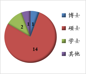 目前本中心师资团队共有18人,其中正高职称1人,副高职称2人,中级职称13人,初级及其他2人;学位方面博士1人,硕士14人,学士及其他3人,职称和学位分布合理。